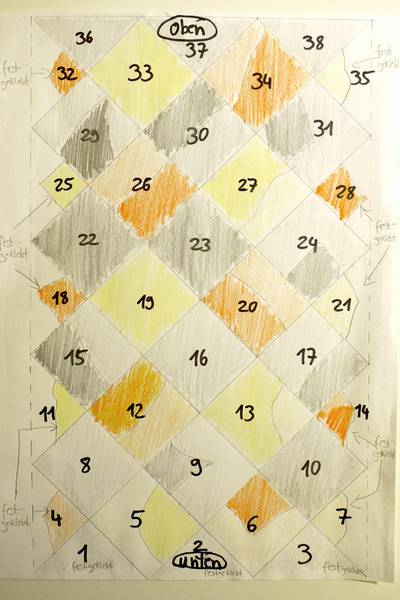 Ziel der durchgeführten Maßnahme war es, durch die Ergänzung der Fliesenfragmente und durch die Herstellung von Nachbildungen eine ca. 60 x 90 cm große Fläche mit Kacheln zu komplettieren, um in der Ausstellung einen Eindruck des Fliesenboden, wie er ausgesehen haben könnte, zu vermitteln.